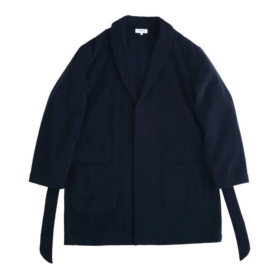 カーディガンや軽コート感覚でラフに羽織れるウールローブコートです。