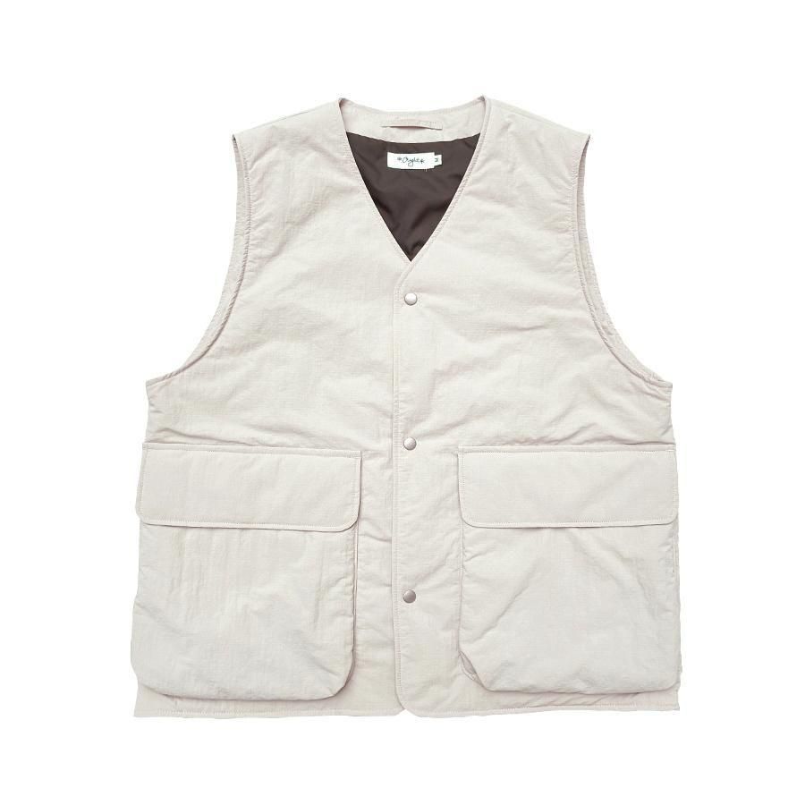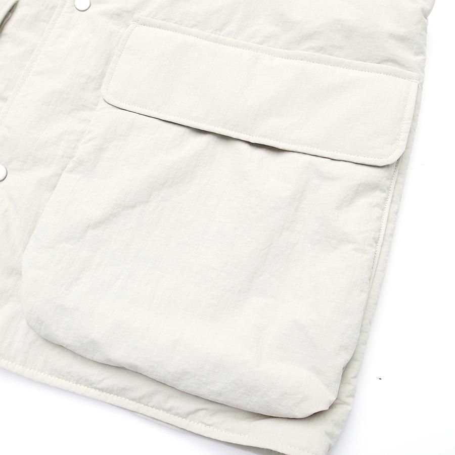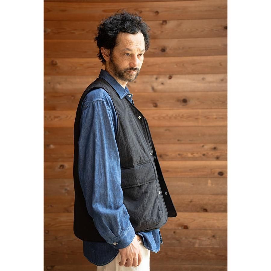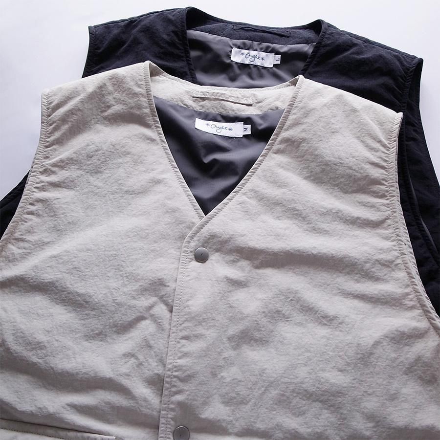 身幅にゆとりを持たせたボックスシルエットで薄手の中綿が入っているVESTです。