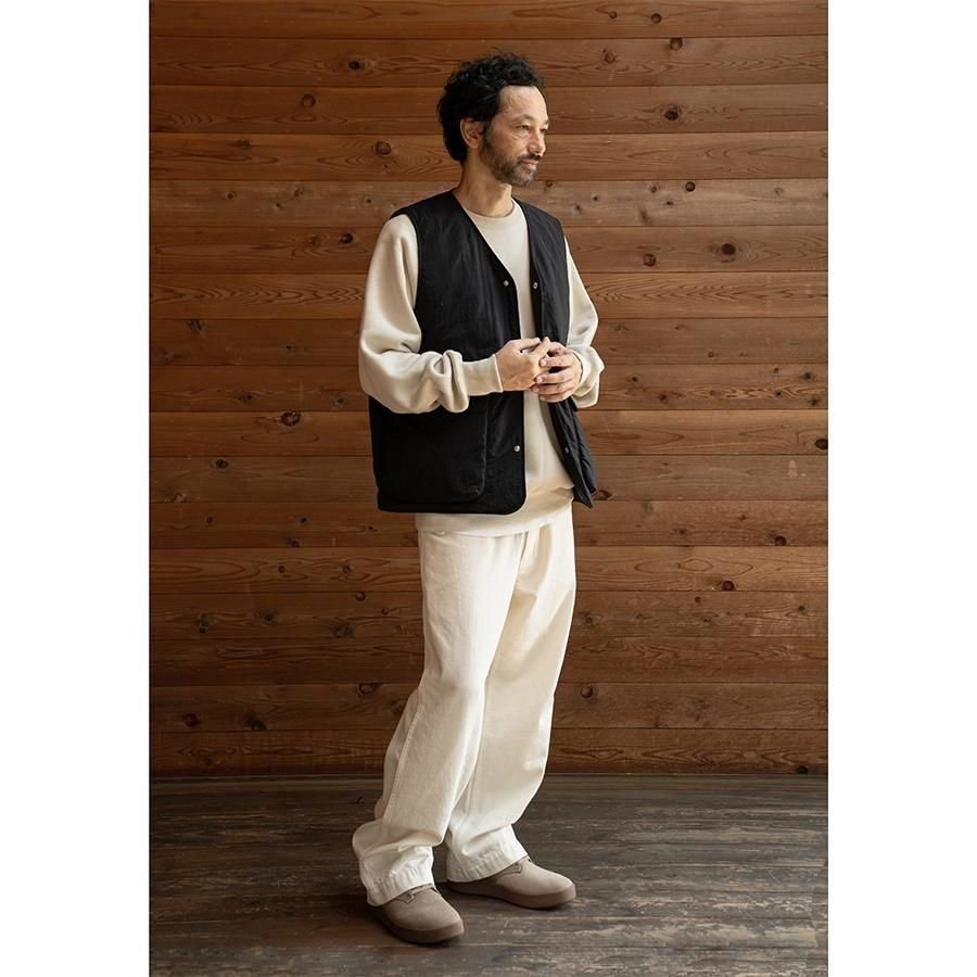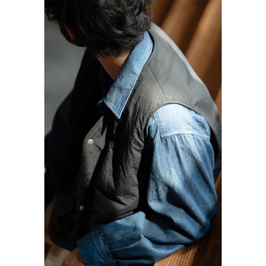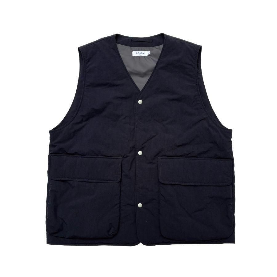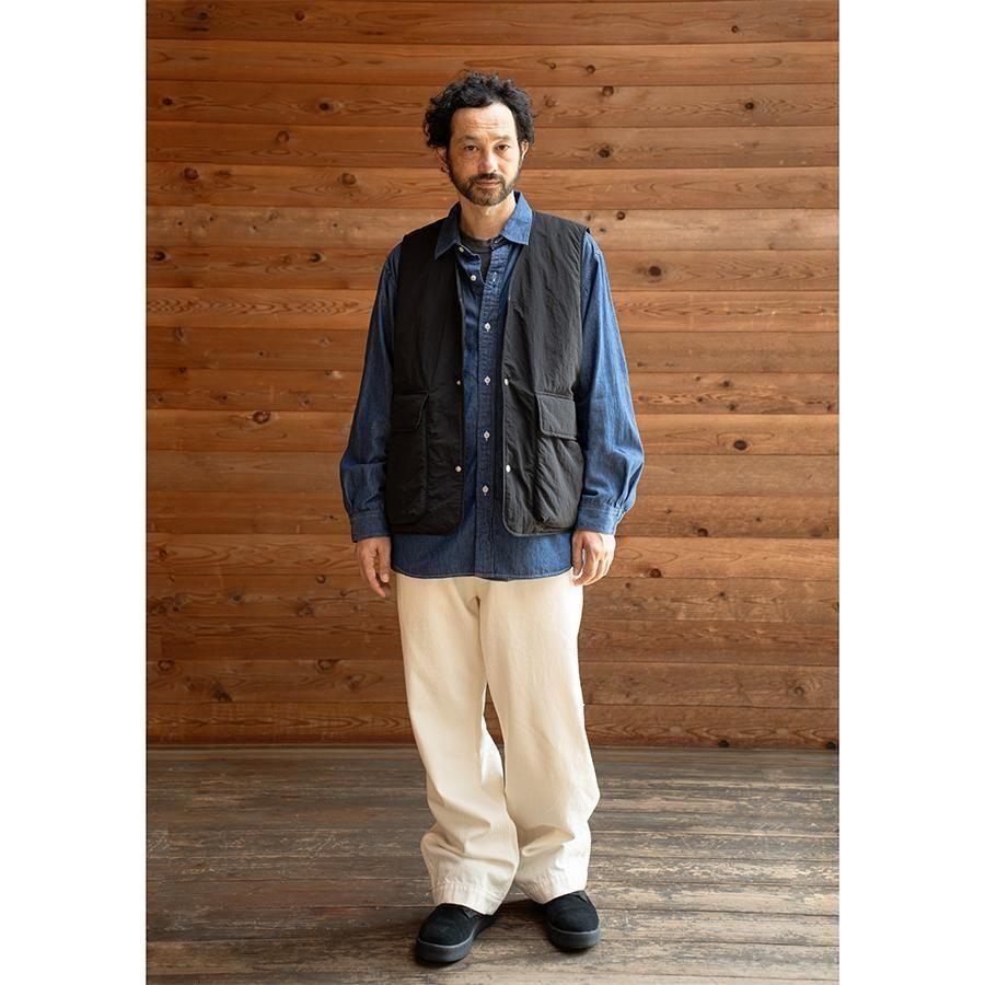 身幅にゆとりを持たせたボックスシルエットで薄手の中綿が入っているVESTです。