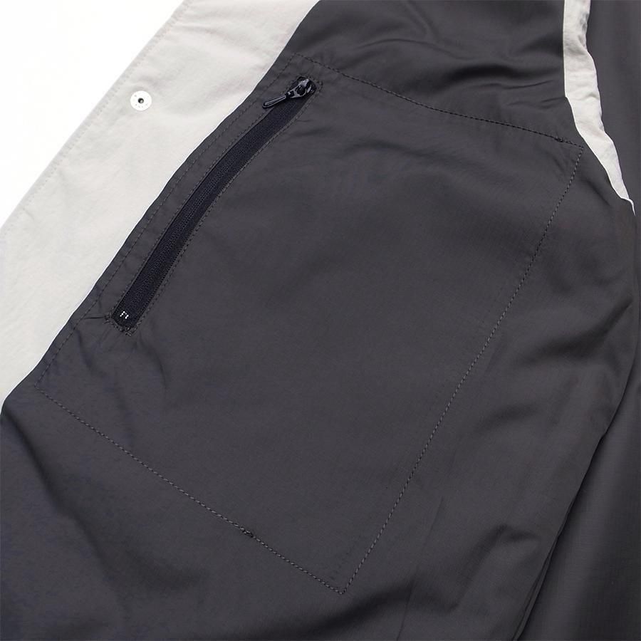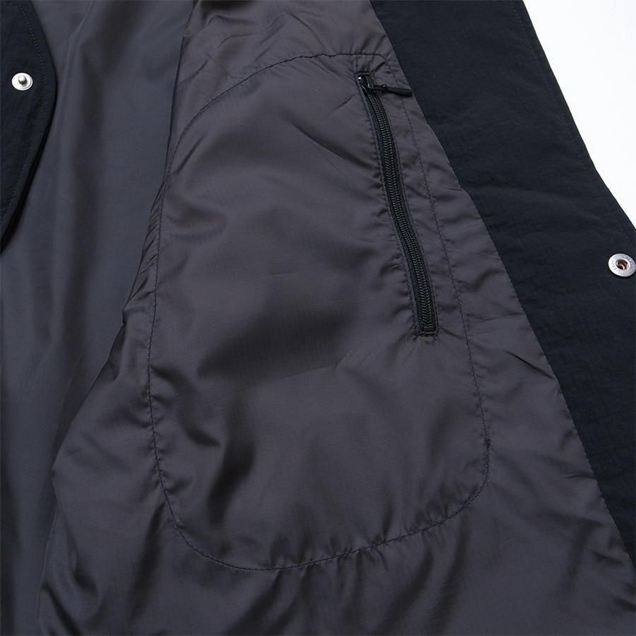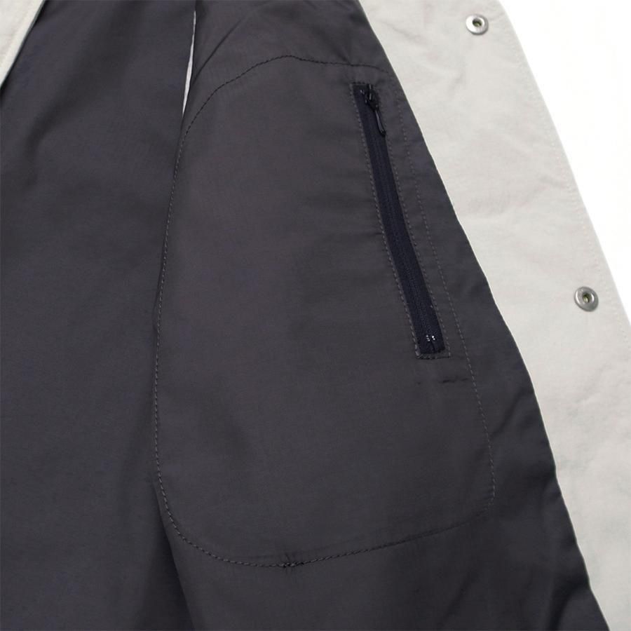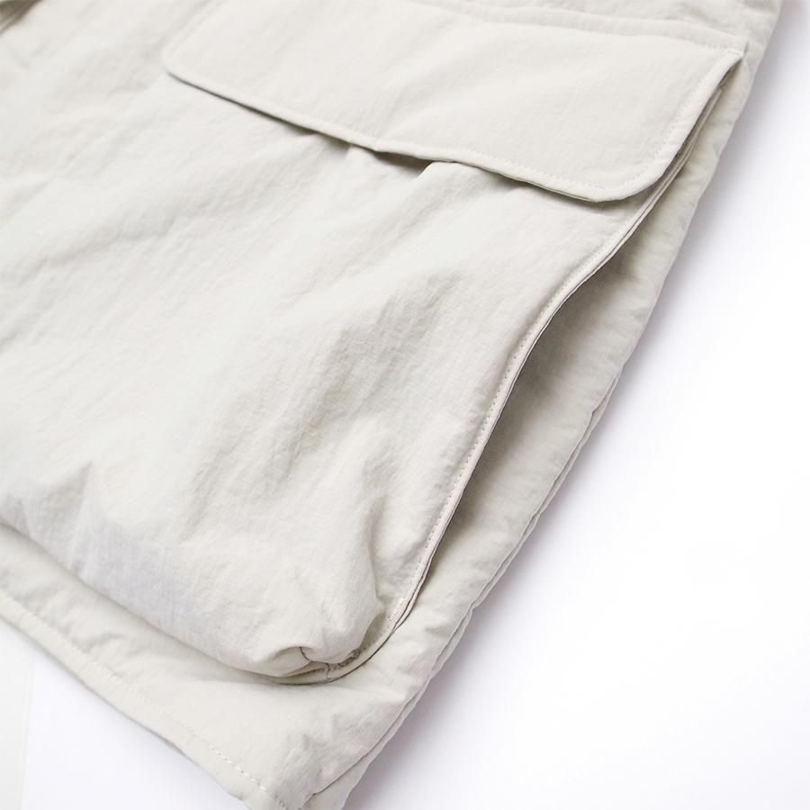 シャツやスウェットにアウターとして羽織るだけでなく、冬場はOUGHTのコーチジャケットやバルカラーコートのインナーとしても着れるように考えて作りました。気温に合わせてレイヤリングしてみてください。大ぶりなフラップポケットにはサイドからもポケットを備え、内両胸に使い勝手の良いファスナー内ポケットもあるので収納も便利です。